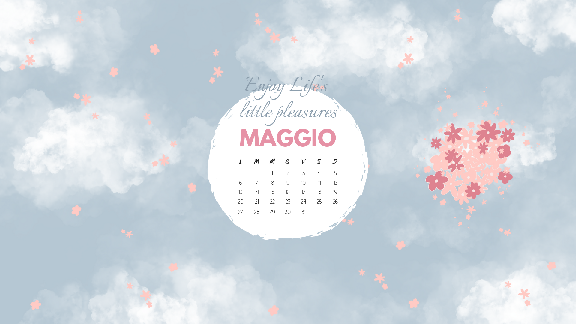 Free wallpaper del mese di maggio. maggio è il mio mese del cuore. Tante ricorrenze, il mio compleanno, le giornate all’aria aperta e il sole che cala sempre più tardi. E’ tempo di amici, giochi, sorrisi.